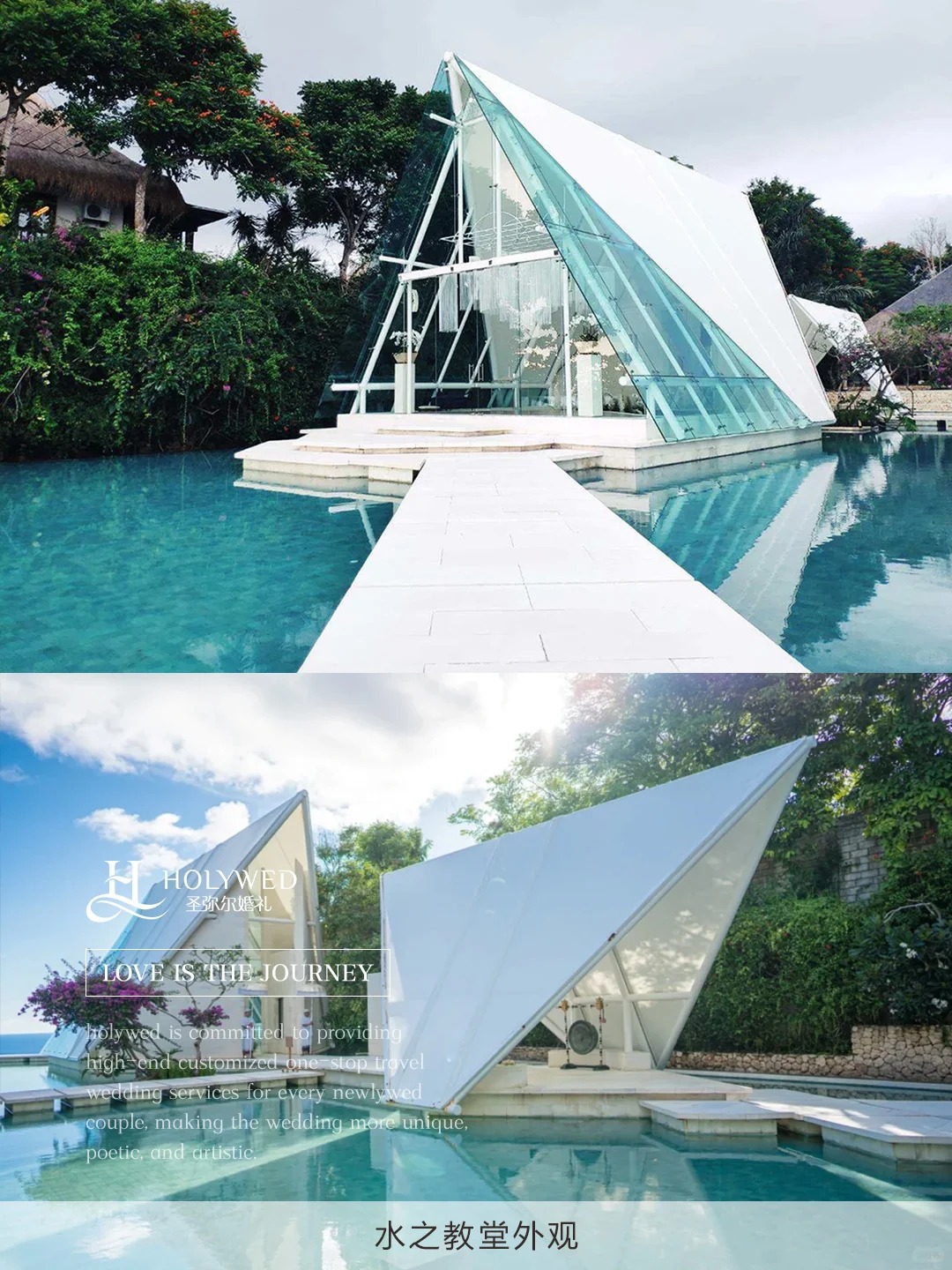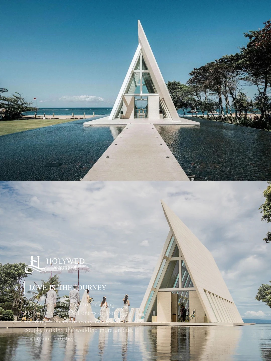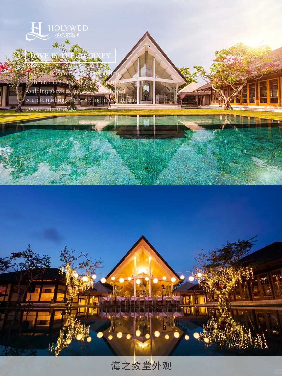 海之教堂是巴厘岛最具代表性的建筑之一,也是悬崖海景教堂。教堂外是海之水台,水台婚礼的天空之境也是海之非常出名的原因之一。海之教堂和海之水台可以2选1哦!