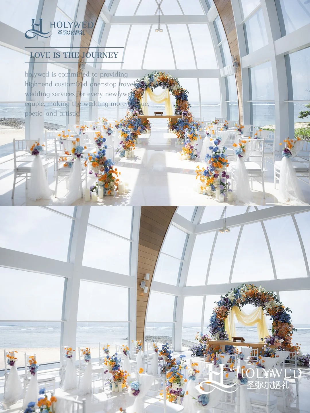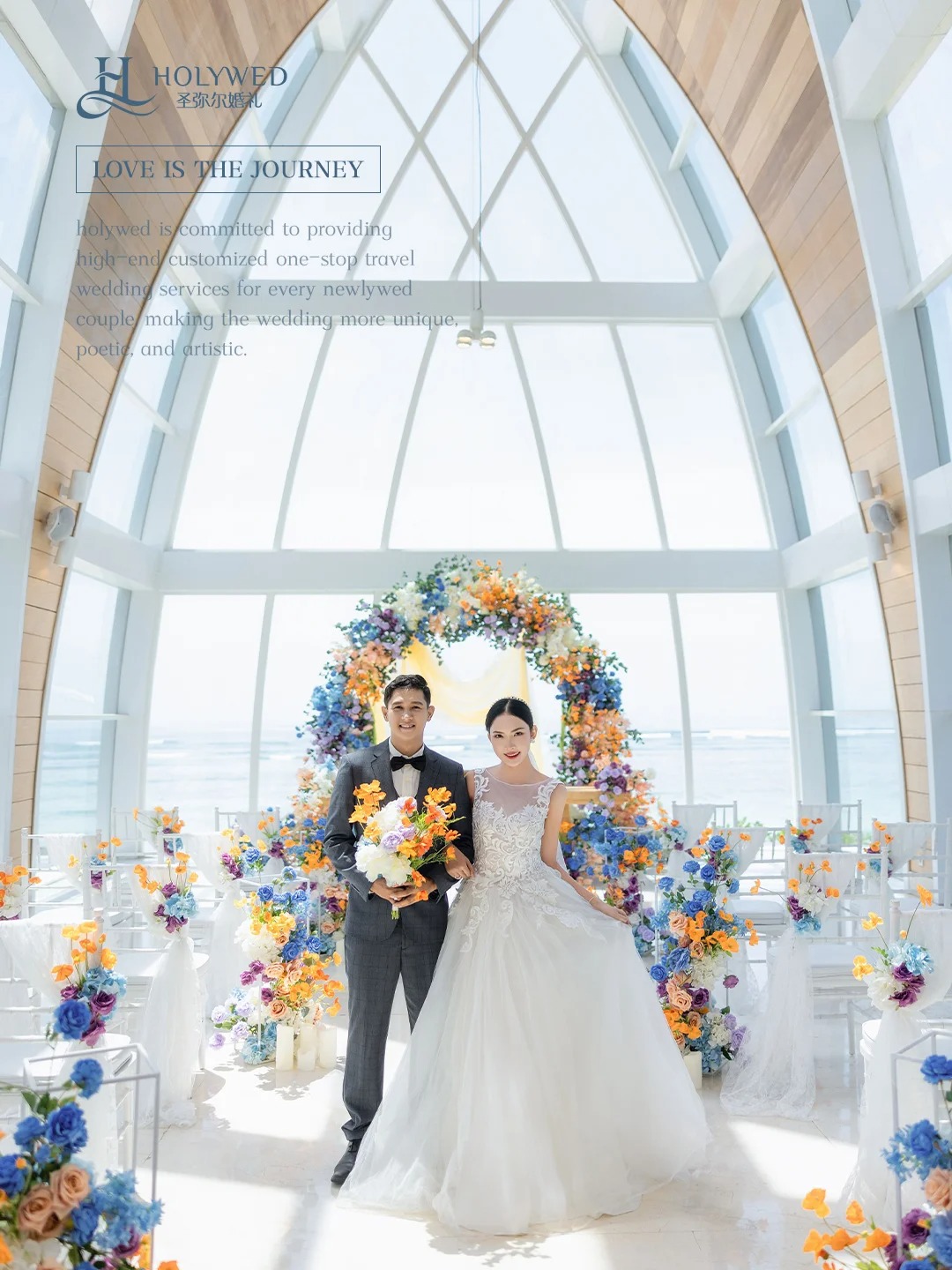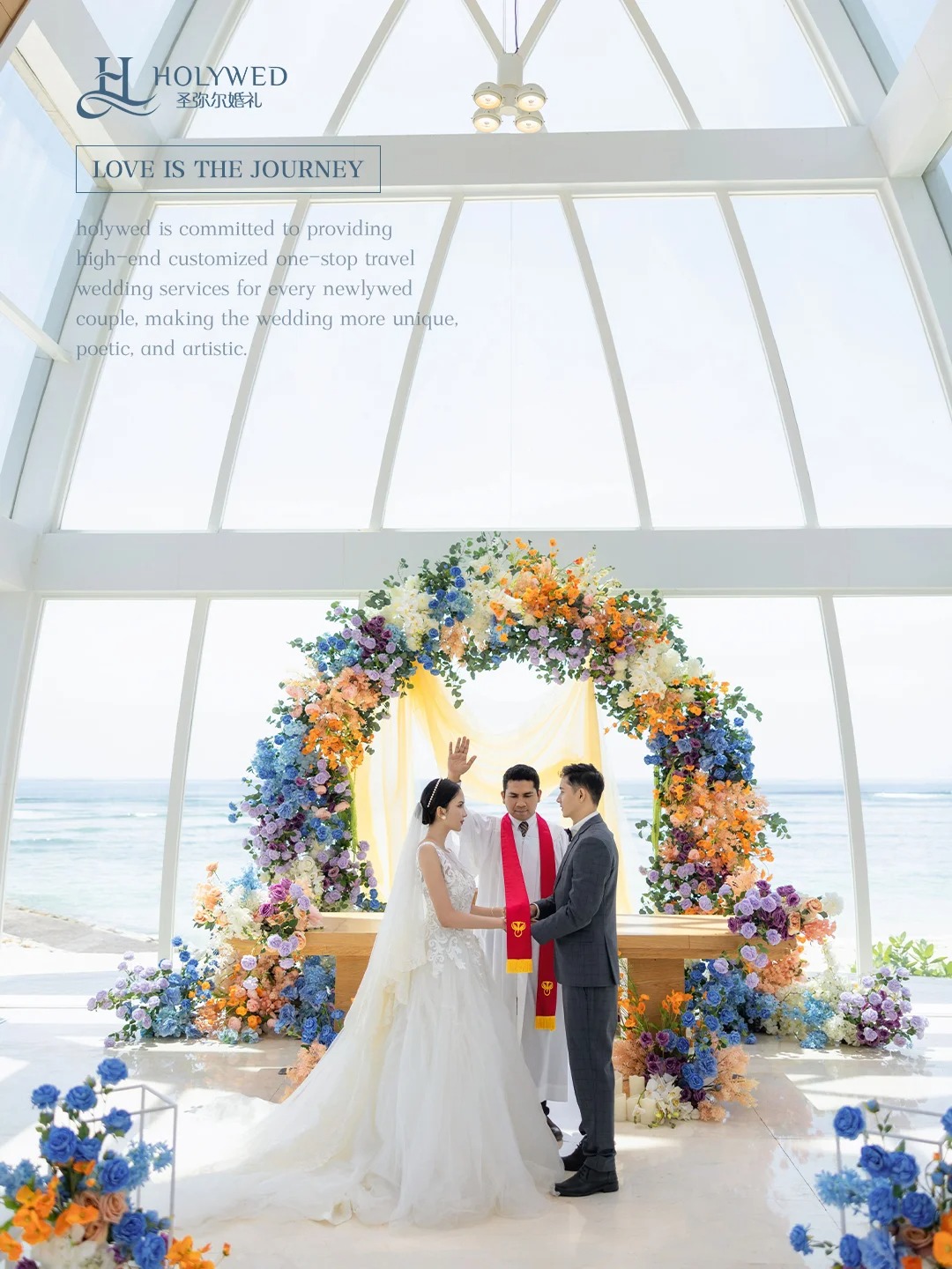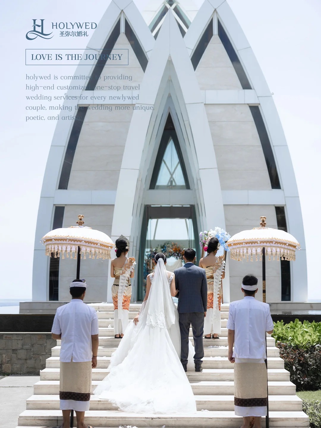 在这场以巴厘岛为婚礼目的地的海外旅行婚礼中,丽丝卡尔顿大教堂以其明亮的落地玻璃和与海平面相接的设计,颠覆了传统教堂的印象。新人在充满音乐的神圣教堂中举行庄严而浪漫的婚礼仪式,让所有在场的人都为之倾心与难忘。