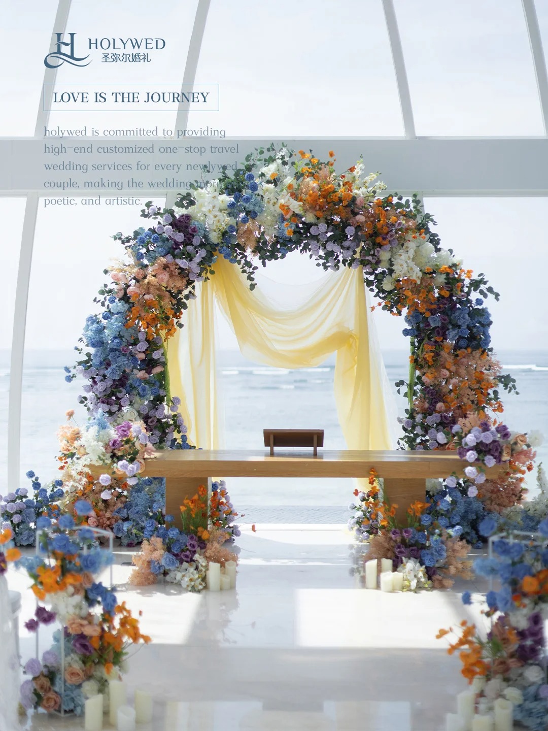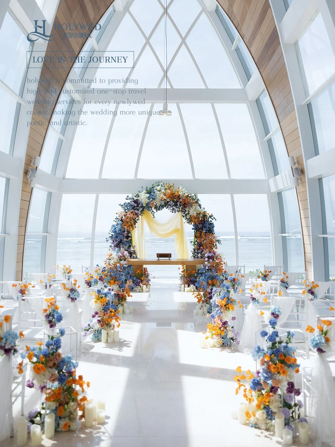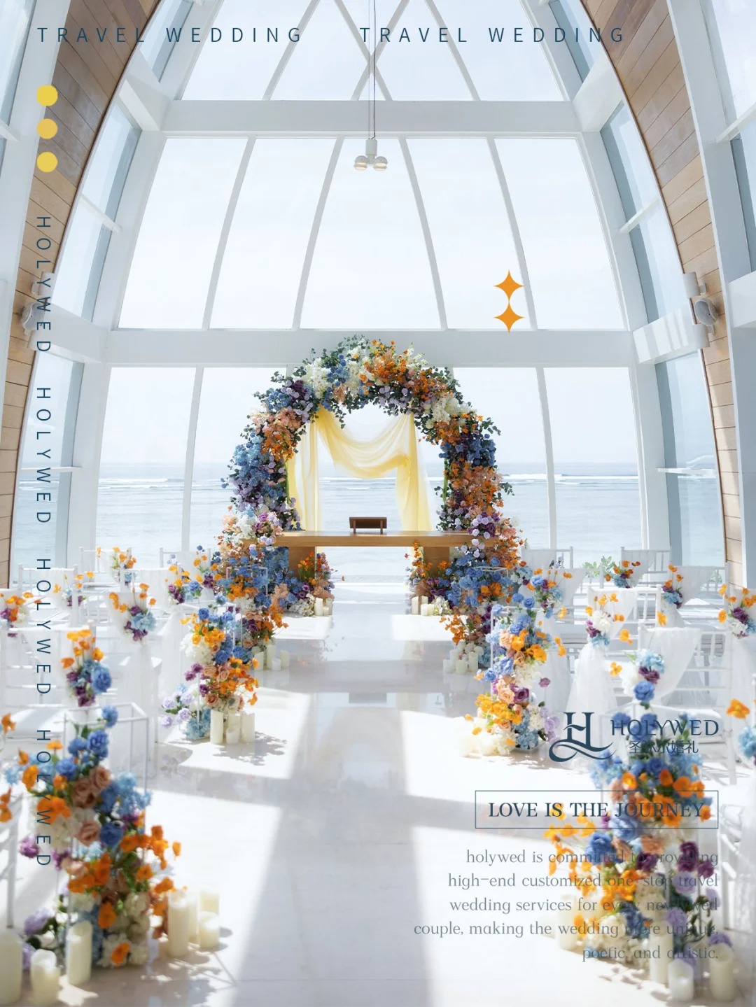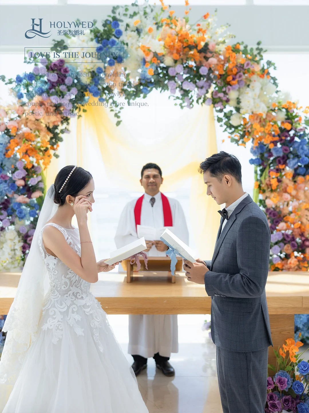 在这场以巴厘岛为婚礼目的地的海外旅行婚礼中,丽丝卡尔顿大教堂以其明亮的落地玻璃和与海平面相接的设计,颠覆了传统教堂的印象。新人在充满音乐的神圣教堂中举行庄严而浪漫的婚礼仪式,让所有在场的人都为之倾心与难忘。
