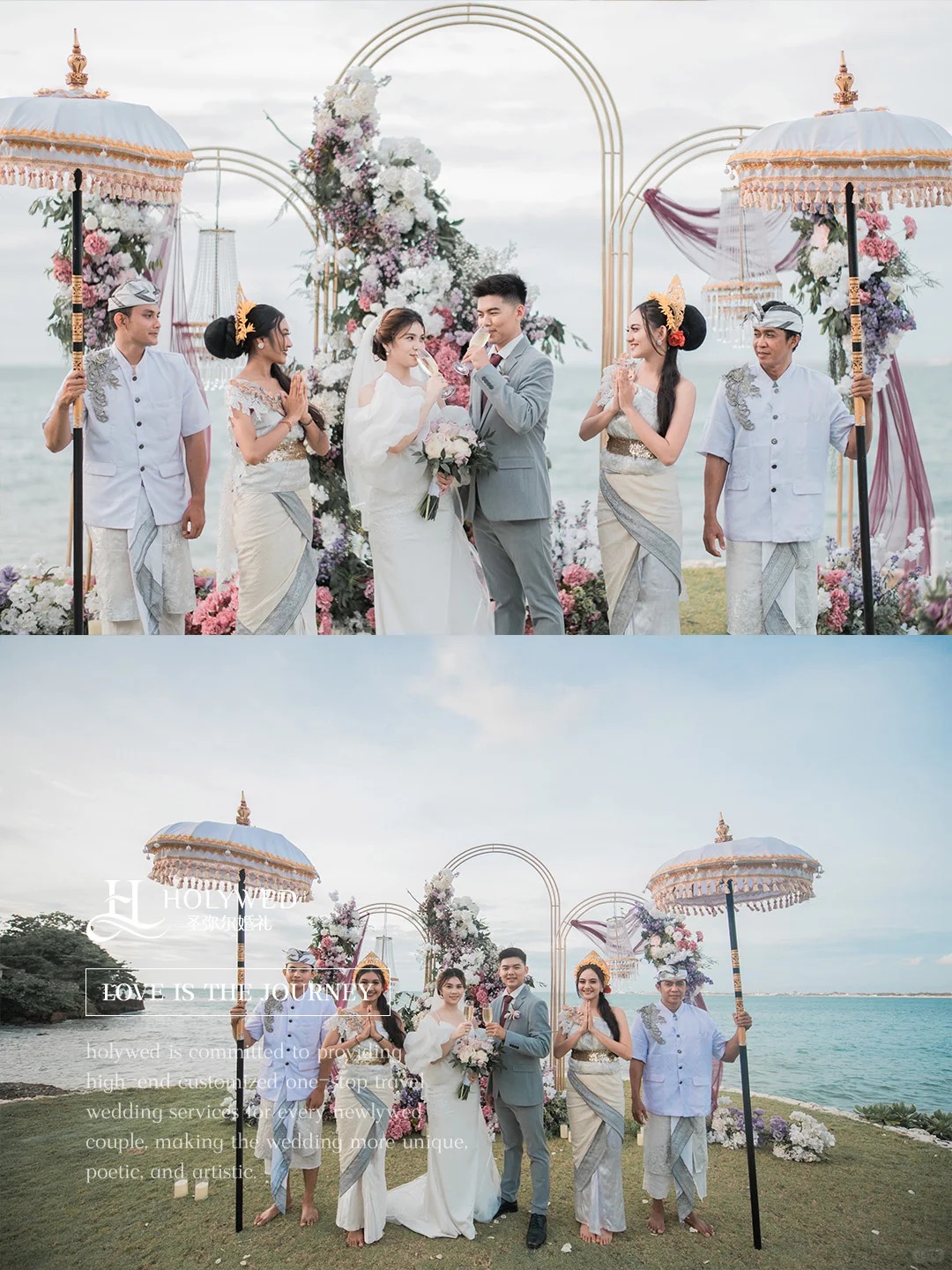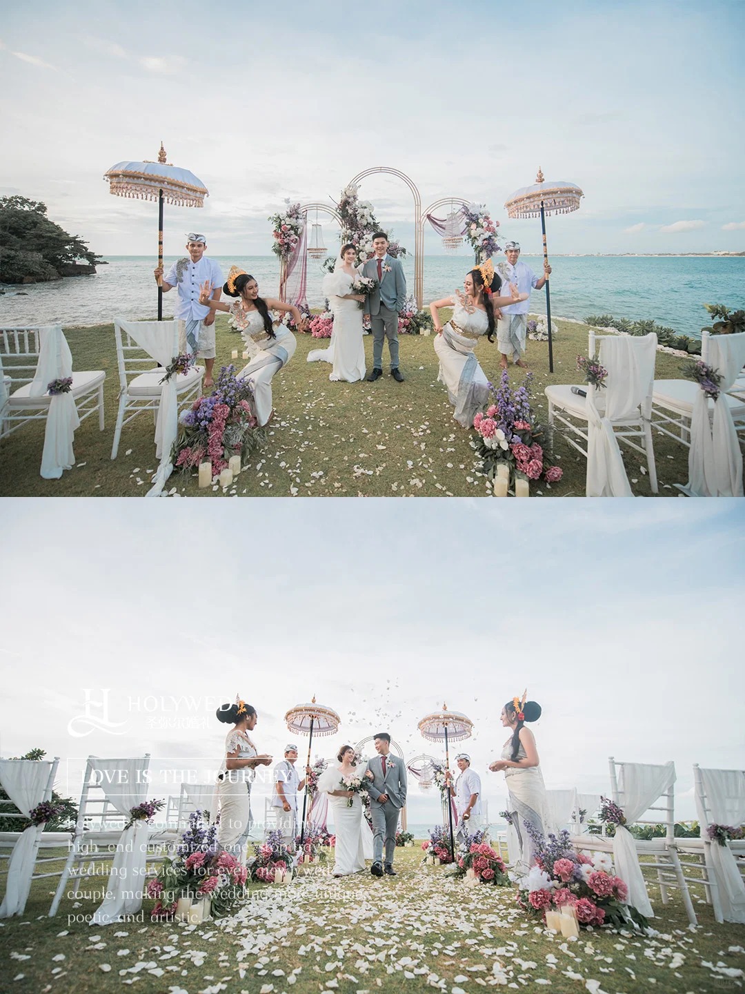 金巴兰地区的四季酒店是巴厘岛海岛婚礼的理想选择,因其优越的位置、美丽的婚礼场地和舒适的酒店服务而备受推崇。酒店提供上午10点和下午5点的婚礼场次,其中下午5点的场次因金巴兰海滩的夕阳美景而尤为抢手。四季酒店的婚礼草坪面积达95平方米,可容纳60人,且周边无遮挡,海景视野极佳。酒店以其五星级全别墅度假村和热带雨林庄园著称,被誉为“巴厘岛最美落日度假地”,是婚礼摄影的绝佳场地。