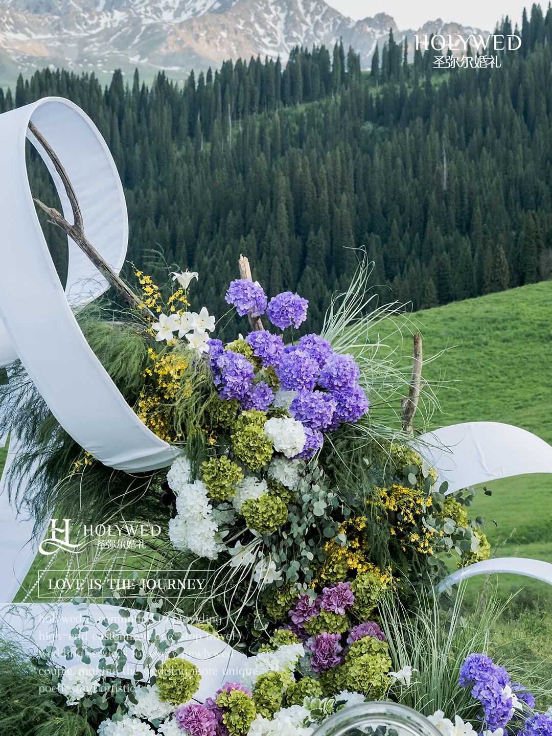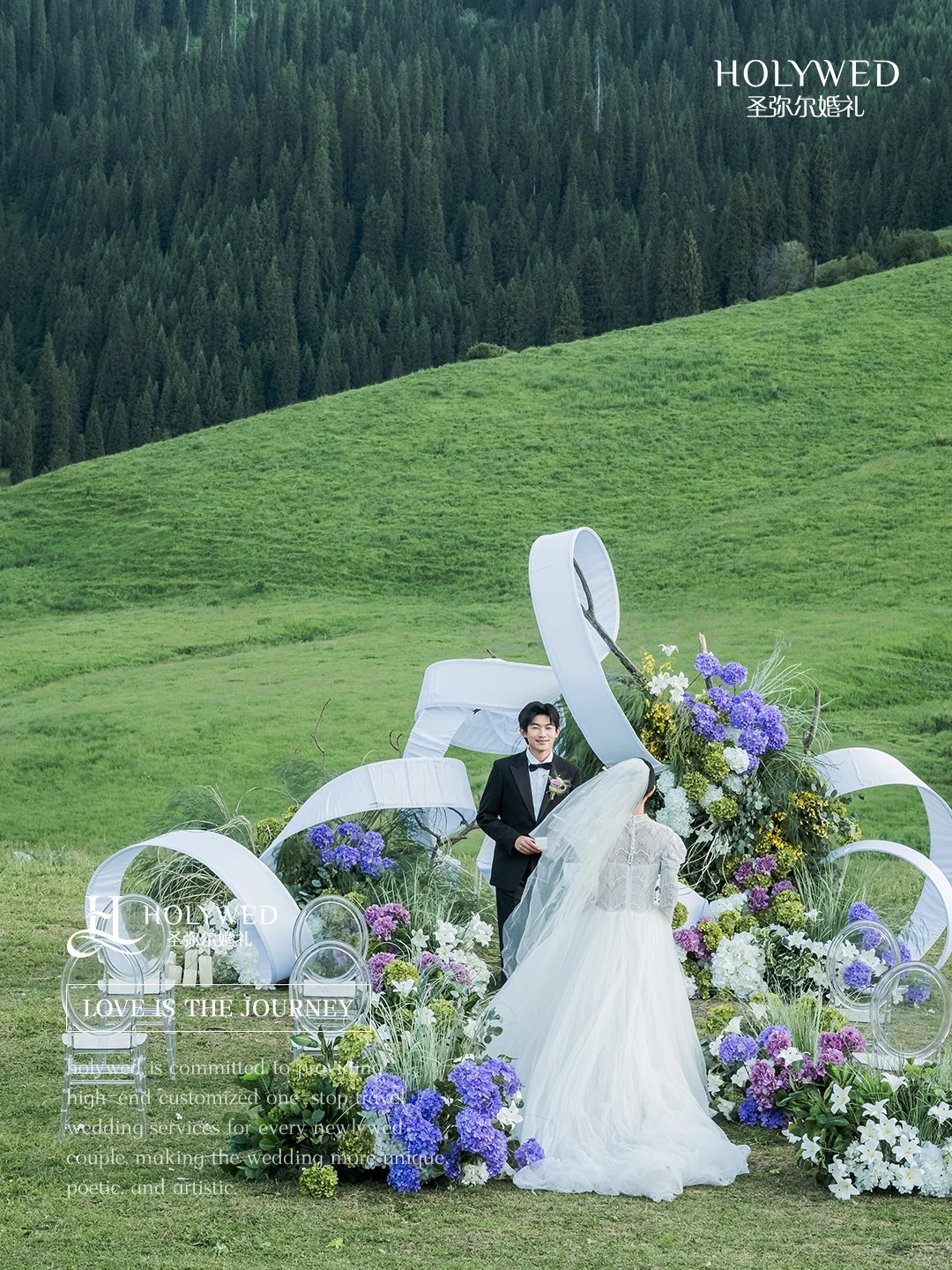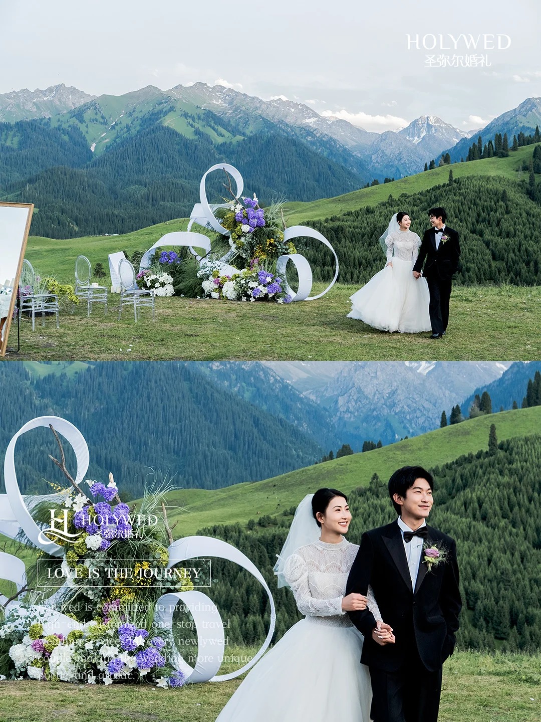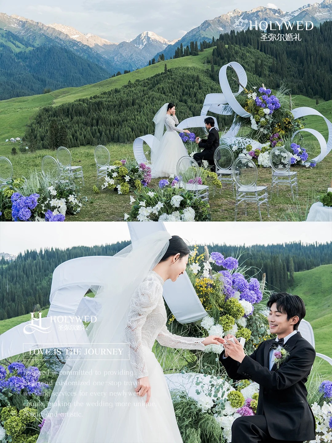 新疆旅行婚礼提供了一种自由、轻松、浪漫的选择,远离复杂的人事和备婚压力。在这里,新人可以远观巍峨的雪山,近赏湖泊、丛林、草原与鲜花,享受大自然赐予的仙境般的美景。这种目的地婚礼让新人回归自然,追求真爱,期待未来的美好生活。婚礼策划由圣弥尔全球旅行婚礼负责,地点位于新疆。