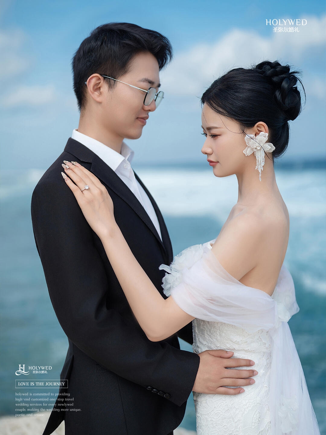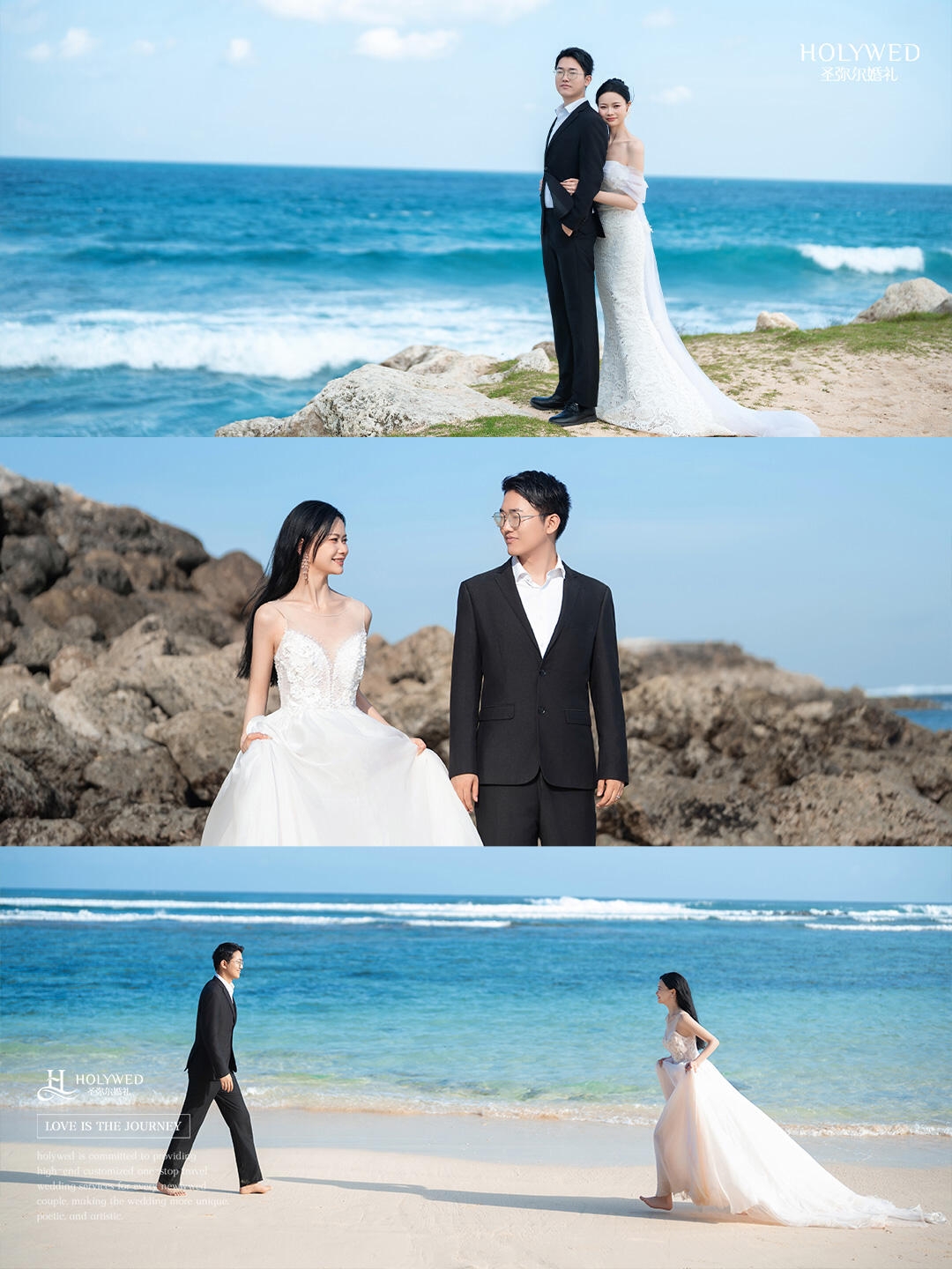 3️⃣把捧花抛向海面的抓拍,动态感绝绝子