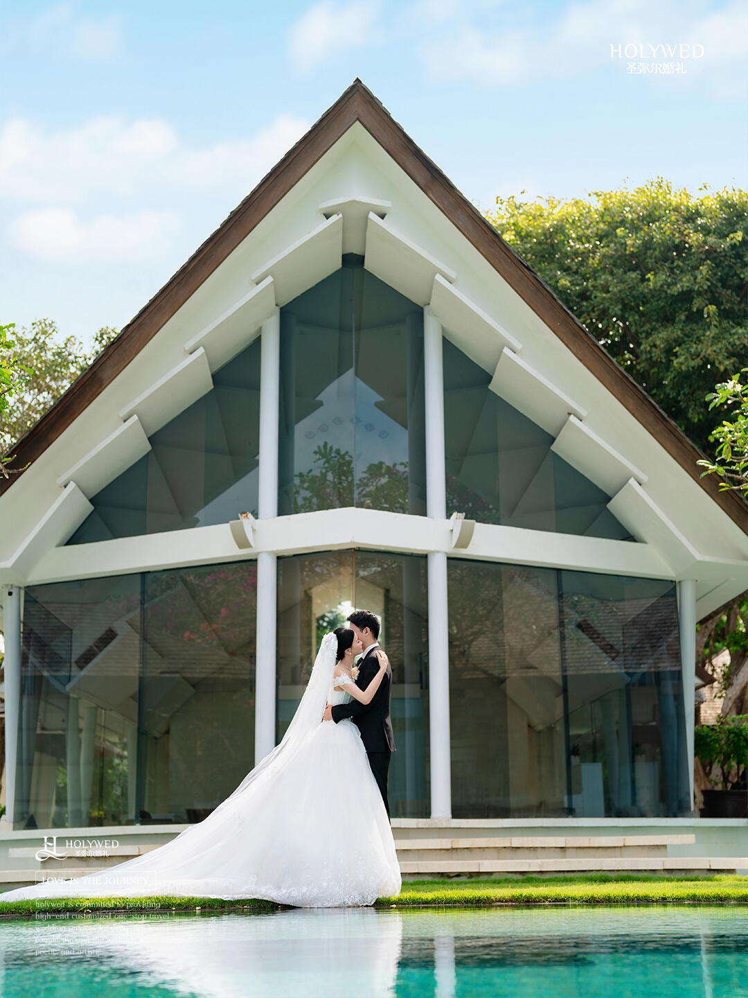 1️⃣水台镜面倒影一定要拍!婚纱裙摆铺开的瞬间美哭