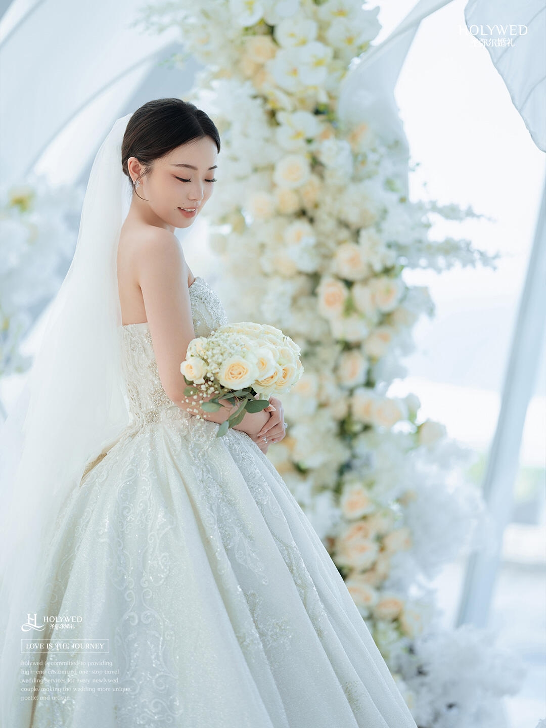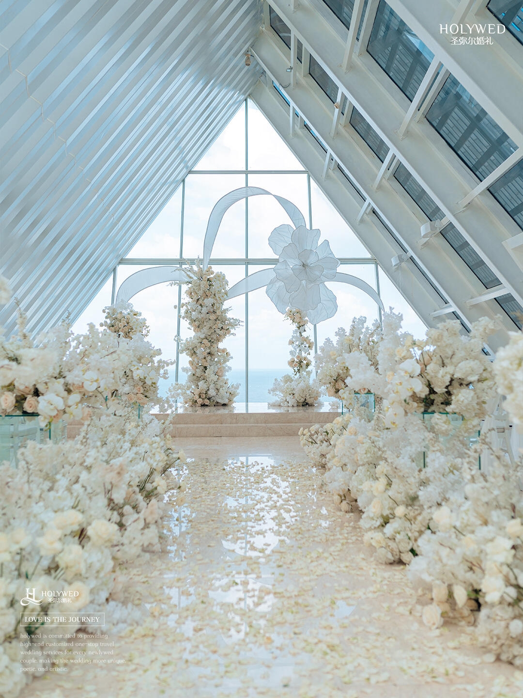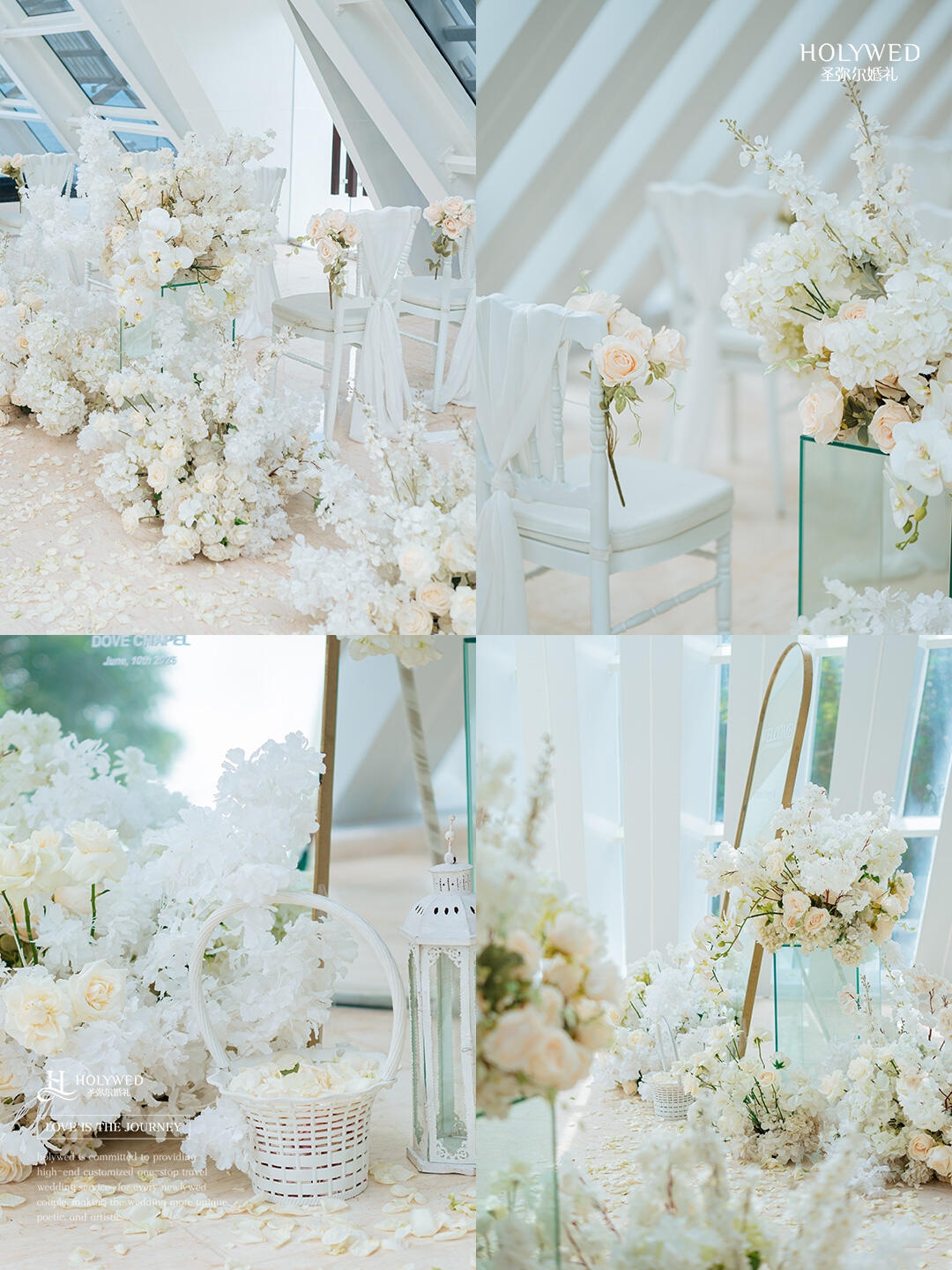 这场婚礼的布置大胆采用了纯白色