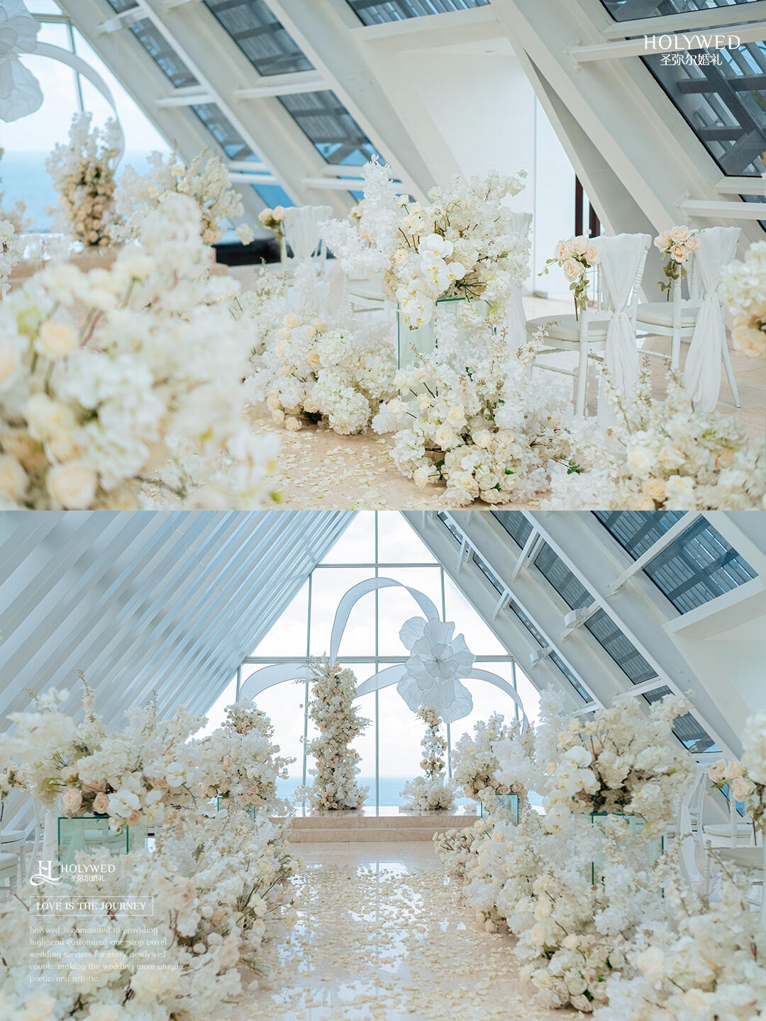 教堂内部的🌊180度海景➕左右两侧的玻璃幕墙